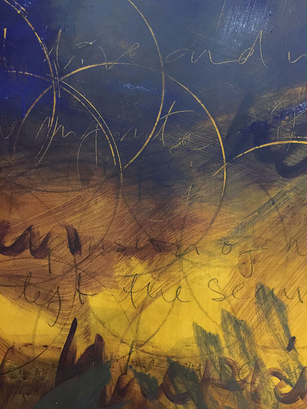 So to add to my previous post I wanted to share with you the layers of painting and collections of words, intuitive writings and marks that make up a finished piece.