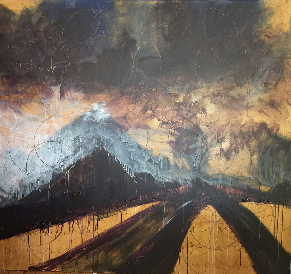 These are the words written throughout the painted layers. They are transposed from a conversation between Dr. Hank Wesselman and a Kahuna elder. He talks of loving with an open heart unconditionally.